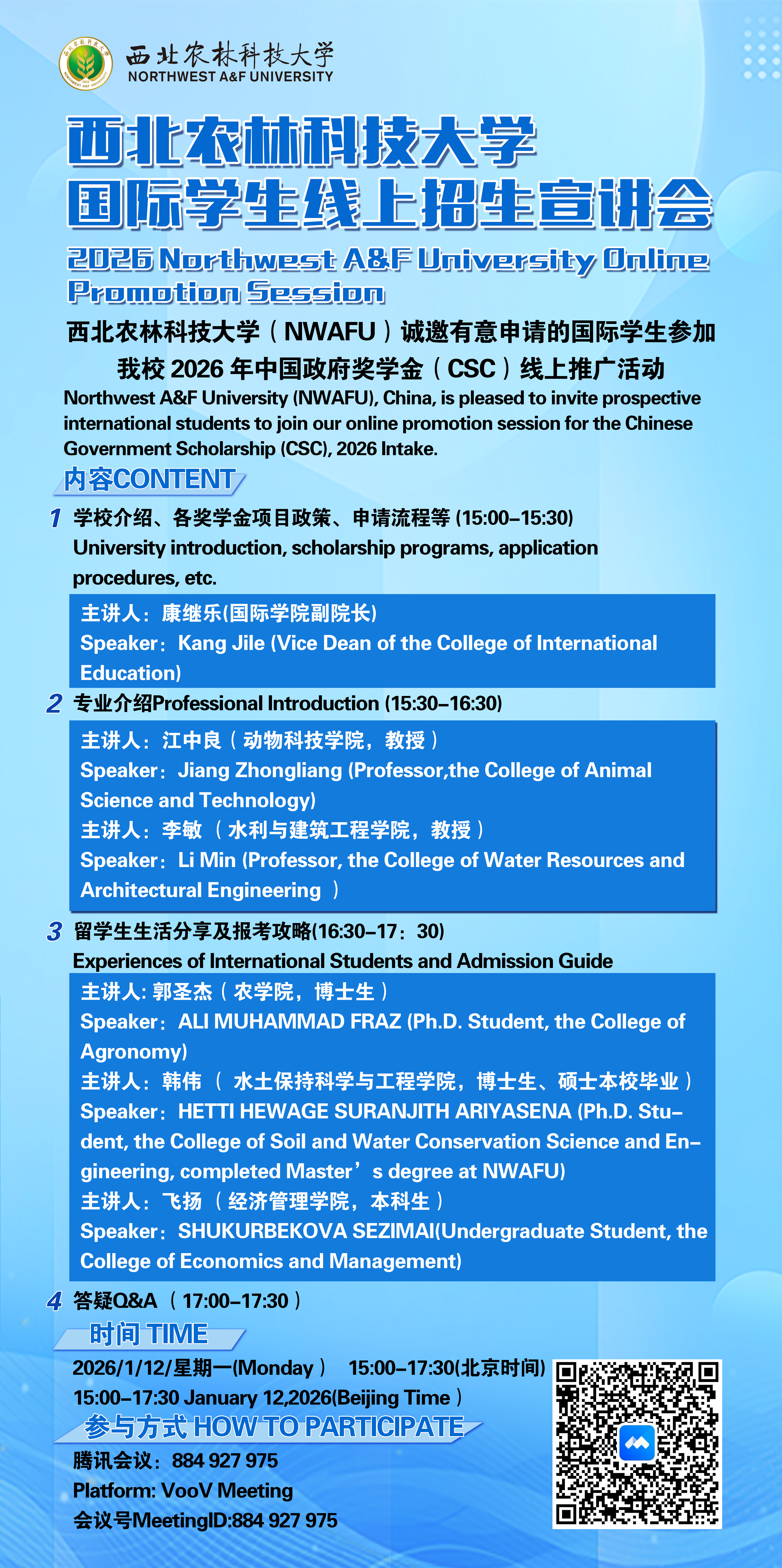 西北衣林科技大学国际学生线上招生宣讲会2026Northwest A&F University Online Promotion Session