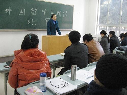 11月19日,国际学院在S1103教室举办2010年第一期中文诗词朗诵比赛。学院领导郑粉莉、李筱英、祁选轩出席, 2009级、2010级全体留学生参赛。