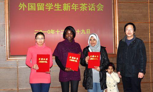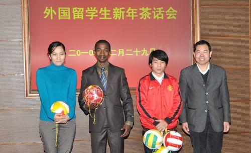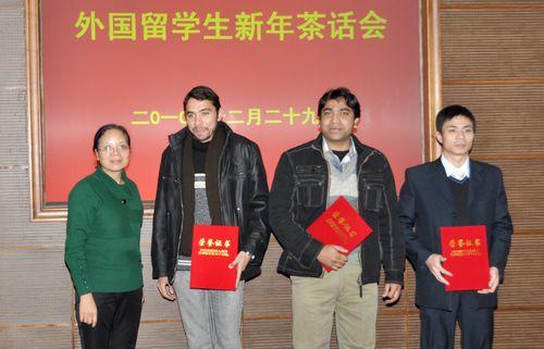12月29日,学校在国际交流中心210会议室举行了2010年外国留学生新年茶话会。孙武学校长、侯曦副校长、王跃进副校长及有关部门负责人、学院导师和外国留学生等一百余人参加了茶话会。