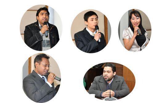 研究生院、教务处、相关学院、导师代表和外国留学生代表分别发言。外国留学生们纷纷表达了学习汉语的热忱,希望能成为中国通,并感谢学校及学院老师的关心和支持。与会各部门负责人及导师均表示将尽力做好外国留学生工作,帮助外国留学生在学习上取得更大的进步,在生活上给予更多的照顾。