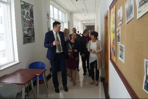 客人参观了留学生教室和活动室,王玉环和罗德米尔•尼科利奇还饶有兴趣的短暂切磋了兵乒球技艺。