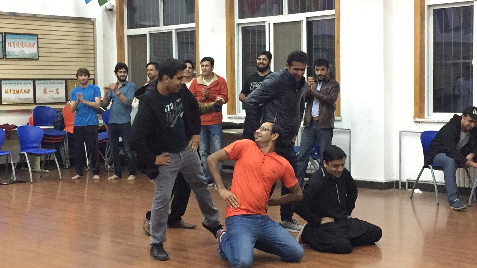 当晚,身着异域文化服饰的各国留学生代表洋溢着欢快的笑脸,载歌载舞。留学生马杰终于不再因为自己是国际学院唯一一名塔吉克斯坦留学生而害羞跳舞了,他和今年新入学的3名塔吉克斯坦留学生一起手舞足蹈;哈萨克斯坦依旧延用粗犷、豪放的舞蹈旋律伴随着清脆的冬不拉弹奏出草原的辽阔;谁又说女生不能豪迈?14个蒙古美女们,用她们柔美的身姿跳跃着轻快的舞步,演绎出巾帼不让须眉的宽阔胸径;由柬埔寨、老挝、巴基斯坦、蒙古、斯里兰卡、泰国等6国留学生组成的青春快闪舞蹈,以欢快、轻松的舞步演绎着留学生的青春梦想;泰国留学生以手执花伞,怀捧壶泼水的舞蹈形式,向人们表达节日的祝福;孟加拉、俄罗斯、卢旺达、老挝、柬埔寨、中非、巴基斯塔等国留学生竞相登台。