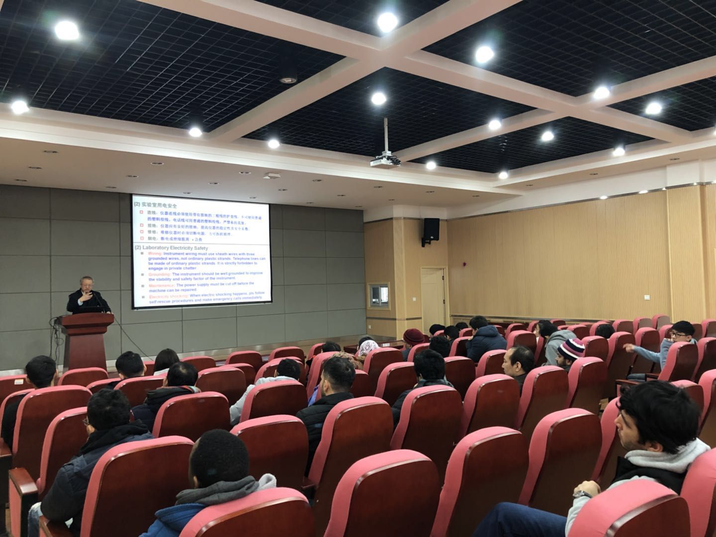 为加强留学生实验室安全管理,强化安全操作意识,普及实验室安全知识,1月14日,国际学院举办了实验室安全知识培训讲座,特邀我校资环学院田霄鸿教授在国际学院101报告厅为在校留学生进行培训。讲座由国际学院副院长王玉环主持。