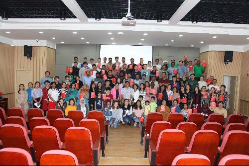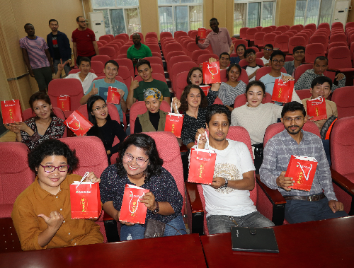 9月11日,国际学院一楼报告厅热闹非凡,国际学院全体职工和百余名国际学生举行迎中秋活动,让各国莘莘学子感受到浓浓的中国传统节日氛围。
