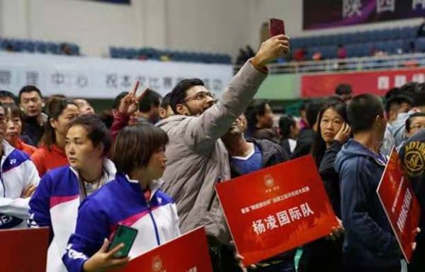 为深化丝路之路沿线城市的友好交流,丰富丝路沿线城市居民生活,完成丝路文化与体育健身的融合,把全民健身理念传递给更多人,10月12日来自陕西、新疆、青海、甘肃、宁夏五省市的近300名运动员,来到陕西省跳水馆(网球中心)的羽毛球馆,共同参加首届“陕能股份杯”丝绸之路羽毛球大奖赛。我校国际学院留学生应邀参加此次比赛。比赛中,全体同学赛出水平、赛出风格,给全体运动队留下深刻的技艺。特别是与奥运冠军张宁的互动给留学生留下了深刻的记忆。来自巴基斯坦新生自己起中文名为林丹,他与奥运冠军张宁配对戏称这是一场“双奥运冠军”的比赛引起观众一片笑声。